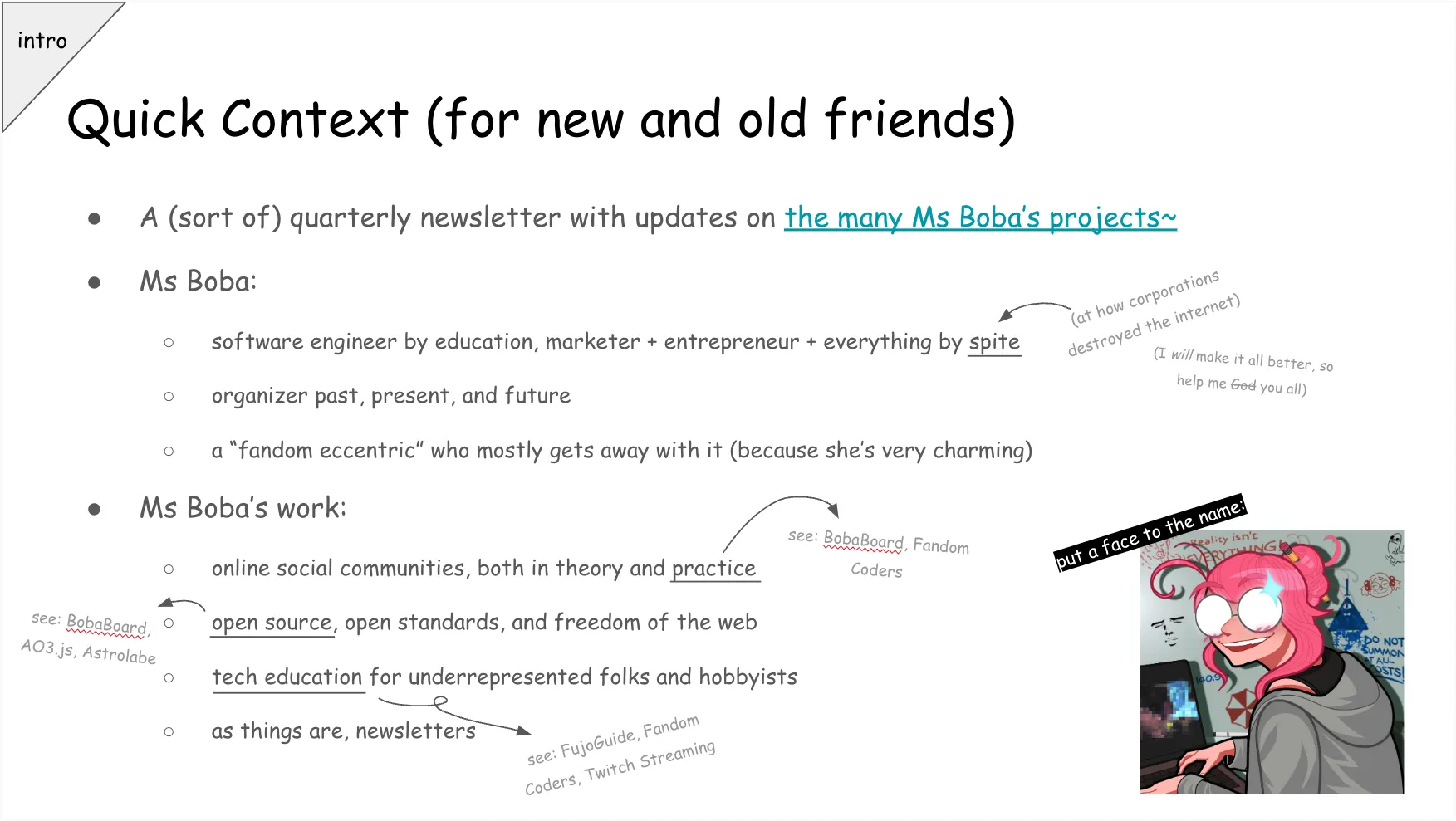 “Quarterly Extravaganza” is my quarterly(ish) newsletter where I update my (paid) $upporters on everything that’s going on with my projects. Currently, extravaganzas are delivered as PowerPoint presentations, with a hefty dose of accompanying small-text commentary that reflects how my ADHD brain thinks about these topics.